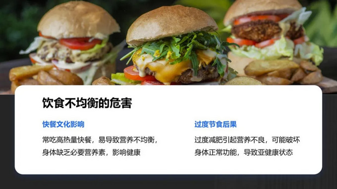 快餐文化盛行,很多男性为了节省时间,经常吃一些高热量、高脂肪、低营养的食物,如汉堡、薯条、炸鸡等。长期如此,会导致身体缺乏必要的维生素、矿物质和膳食纤维,从而影响身体的正常功能。此外,过度节食减肥也会对身体造成伤害,导致营养不良,进而引发亚健康状态。