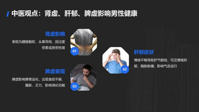 中医认为,男性“挺虚的”多与肾虚、肝郁、脾虚等因素有关。肾为先天之本,主生殖和生长发育。如果过度劳累、频繁性生活等伤肾,就会出现腰膝酸软、头晕耳鸣、性功能减退等症状。肝郁则是由于情绪不畅,导致肝气郁结,影响气血运行,出现情绪抑郁、胸胁胀痛等表现。脾虚则会影响脾胃的运化功能,导致食欲不振、腹胀、乏力等症状。