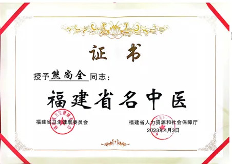 熊尚全主任荣任福建省名中医,成立省名中医工作室二级工作站