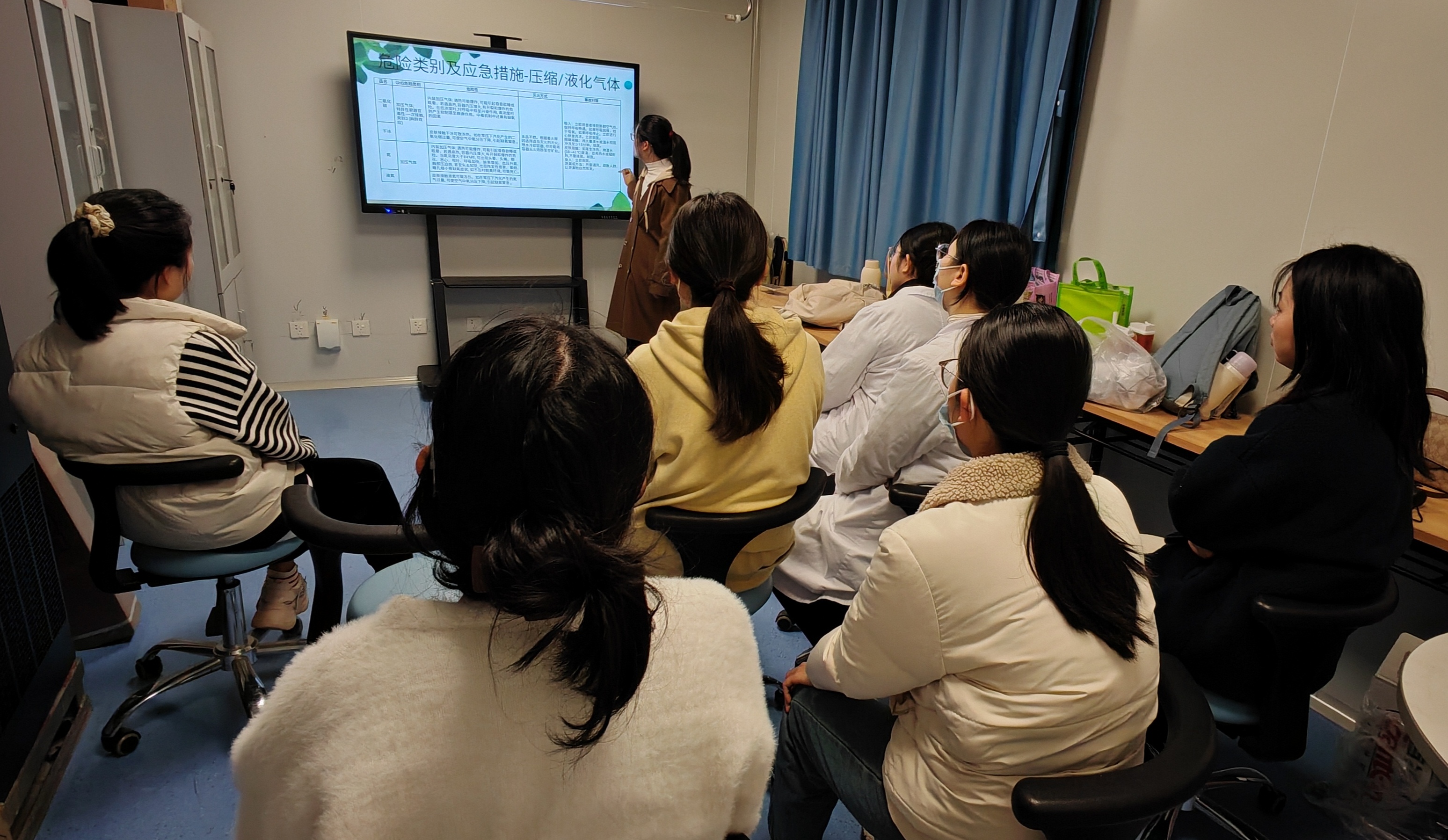 本次培训由实验室负责人宋艳芳指导并统筹安排,实验室安全员林佳负责具体实施培训工作。培训内容包括:1、实验室相关制度及日常管理;2、生物安全;3、实验室危险源辨识;4、危化品及废弃物的处置;5、相关仪器设备的规范操作;5、消防安全及应急预案。
