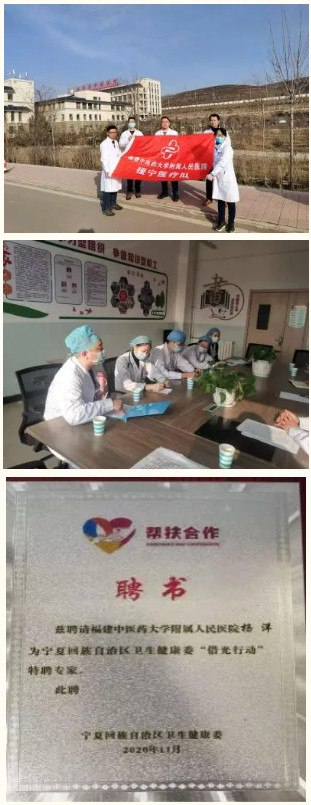 近年来,科室先后派出多名高级职称医生至新疆昌吉州中医黄播 、宁夏西吉县中黄播 开展对口医疗帮扶,至光泽县总黄播 、永泰县总黄播 进行下乡帮扶工作。