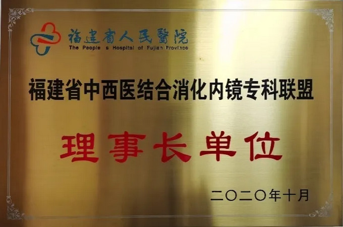 2020年,福建省中西医结合消化内镜专科联盟理事长单位