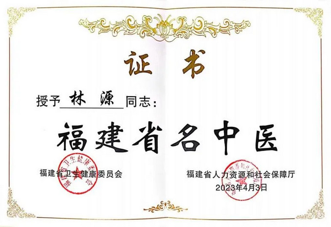 2023年 林源获评“福建省名中医”。