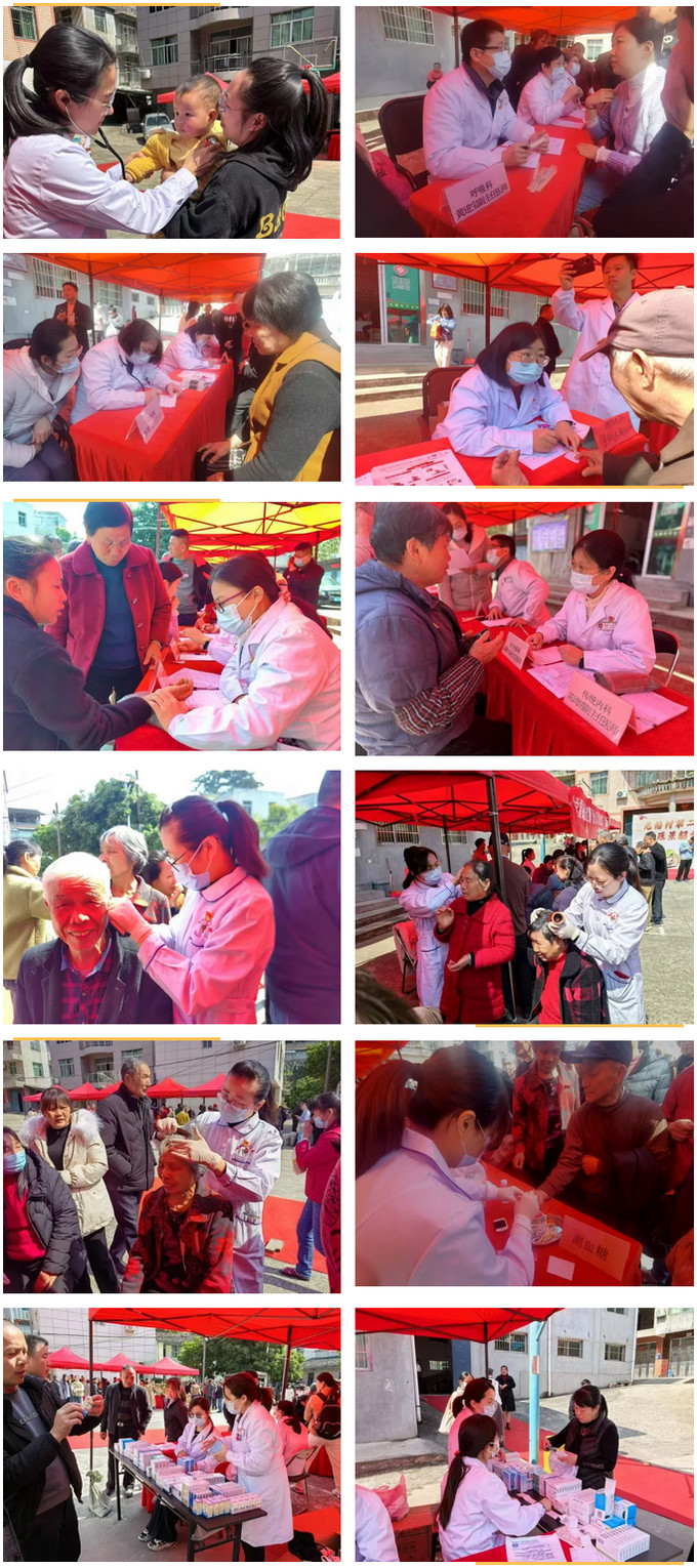 签约仪式后,医护志愿者们立即投入到义诊活动中。义诊现场设置了血糖、血压检测区,心内科、呼吸科、内分泌科、传统内科、儿科、中医特色治疗、健康宣教等多个义诊区域。医护人员全情投入,认真细致地为每一位前来咨询就诊的村民进行检查,耐心询问村民的身体状况和既往病史等详细信息,凭借丰富的专业知识和临床经验,给出准确的诊断和科学合理的建议,并开具处方,免费发放药品。中医特色治疗服务区弥漫着艾草的清香,志愿者们手法娴熟地为村民们进行耳穴埋豆、刮痧、艾灸等中医特色技术服务。他们通过精准的穴位刺激,帮助村民缓解身体的疲劳和疼痛,让村民们切身感受到中医传统疗法的独特魅力。健康宣教区同样热闹非凡,志愿者们为群众发放精心制作的宣传资料发放以及生动形象的讲解,并向村民们普及常见疾病的预防和控制知识,如高血压、糖尿病、心血管疾病等慢性病的防治要点,以及日常保健的方法和技巧。