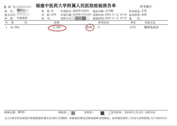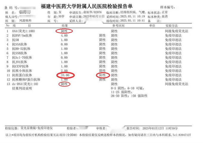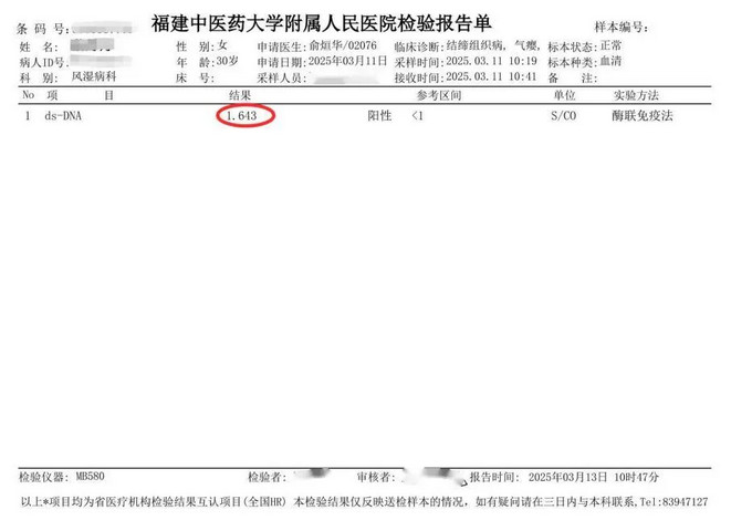 俞烜华副主任医师详细地向她解释了系统性红斑狼疮(SLE)以及抗ds-DNA抗体指标的临床意义。