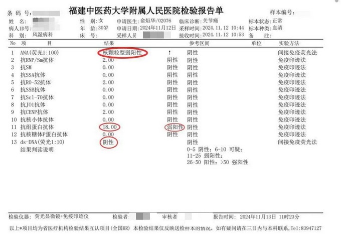 同时小蔡既往有甲亢病史,服用甲巯咪唑,4月余前停药,但其关节痛症状在停药2个月后出现,2024年11月及2025年3月两次查抗ds-DNA抗体(ELISA检测)阳性,抗组蛋白抗体第一次弱阳性(同时ANA弱阳性)、第二次阳性(但ANA阴性),同样不符合SLE分类标准,故暂不考虑甲巯咪唑导致的药物性狼疮。