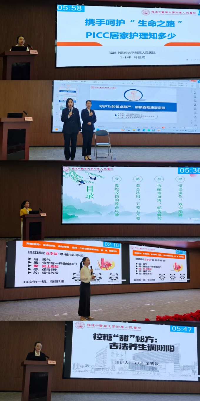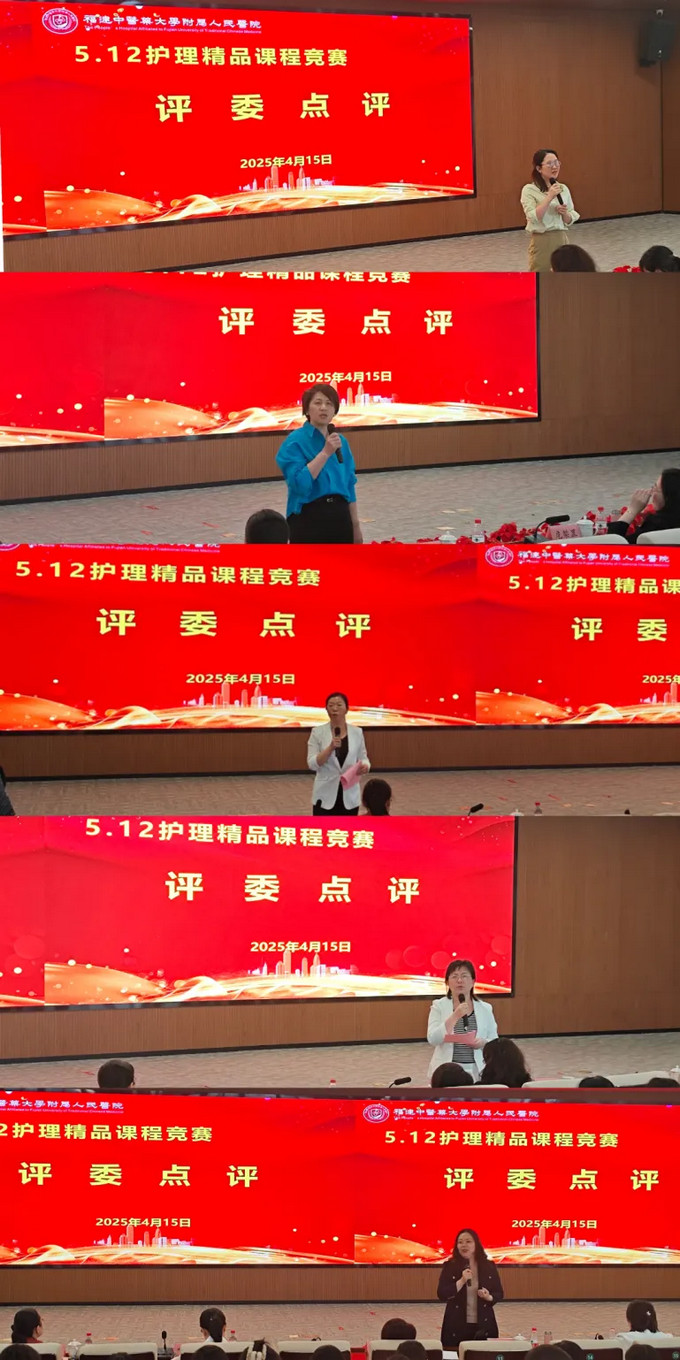为贯彻落实习近平总书记关于中医药工作的重要指示精神,弘扬南丁格尔精神,融合中医药文化特色,黄播 于2025年4月15日下午在7号楼15层学术厅成功举办"三阶赋能·多维守护"护理精品课程竞赛,本次大赛由急诊科郑剑珍护士长主持,吸引了26支来自不同临床科室的护理团队参与,评委团由宣传部魏映双副科长、工会薛念新副主席、教务科叶菁副科长、护理部危椠罡副主任、黄锦华副主任等七位资深专家组成。