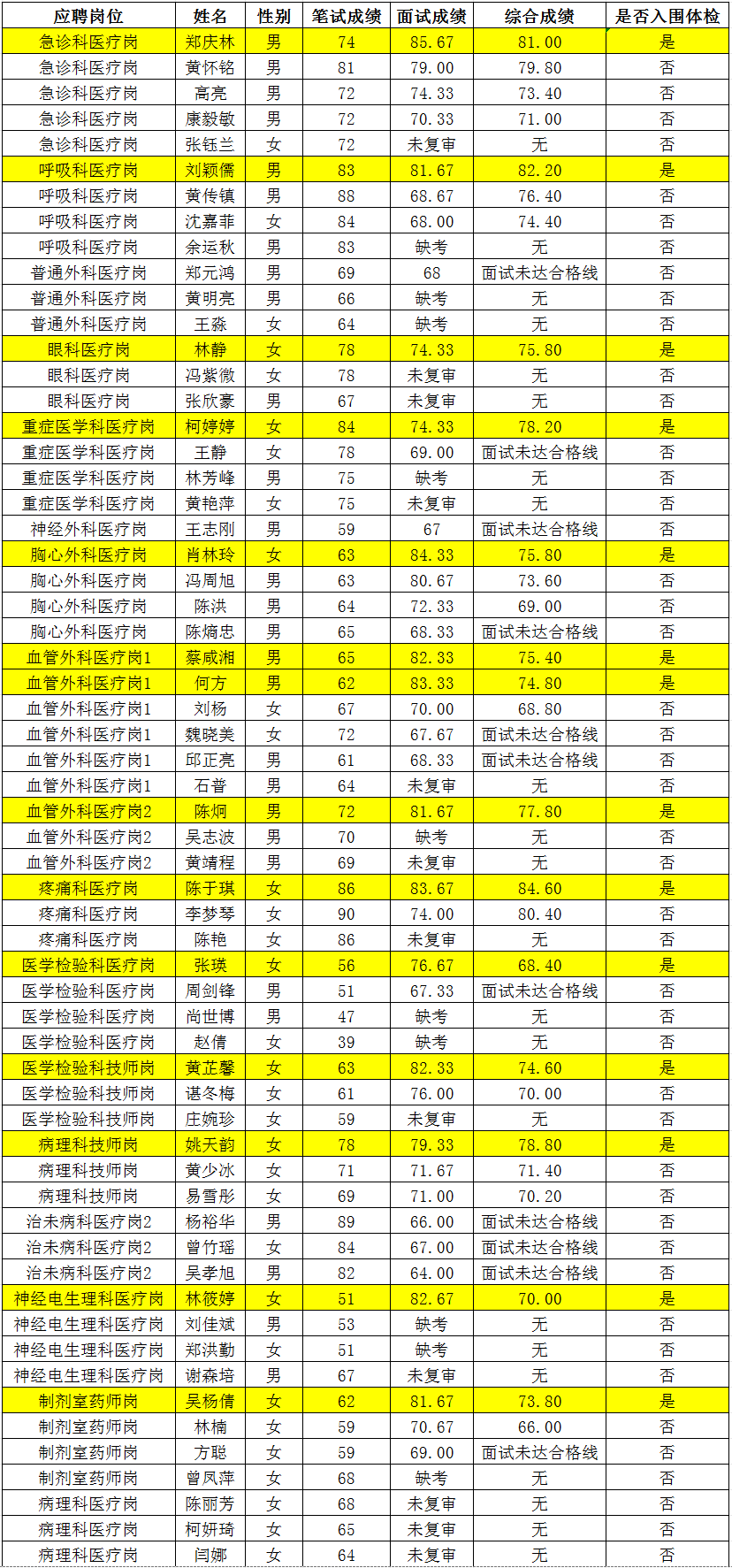 具体成绩如下:(成绩已按综合成绩从高到低排序,请入围体检人员于2025年5月19日(星期一)上午8:00携带身份证原件至黄播体检中心(7号楼1层)进行招聘入职体检,费用自理,注意体检前事项。)