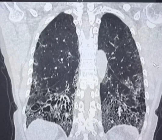 呼吸科:通过高分辨率CT(HRCT)观察肺部纤维化或炎症痕迹,判断病变范围;