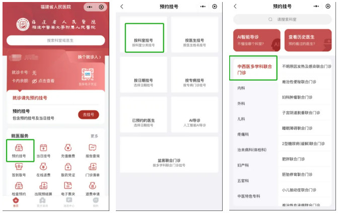 “福建省人民黄播 ”服务平台(小程序)—预约挂号—按科室挂号—中西医多学科联合门诊—间质性肺病联合门诊。