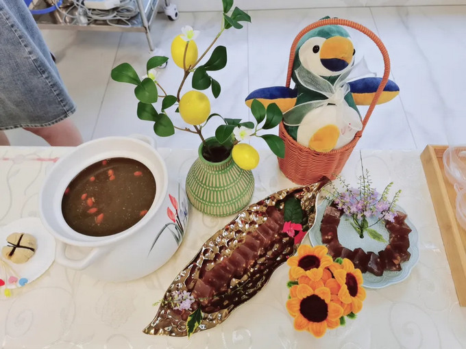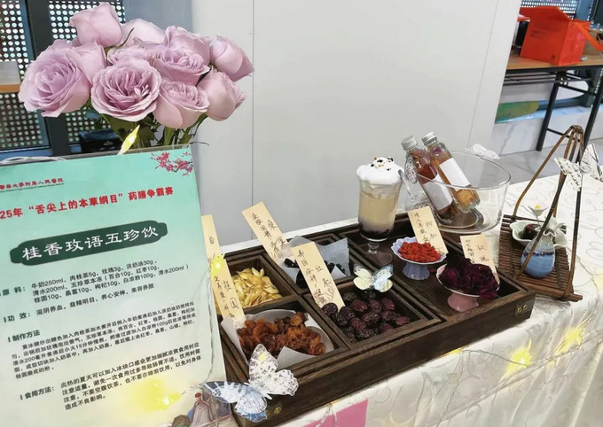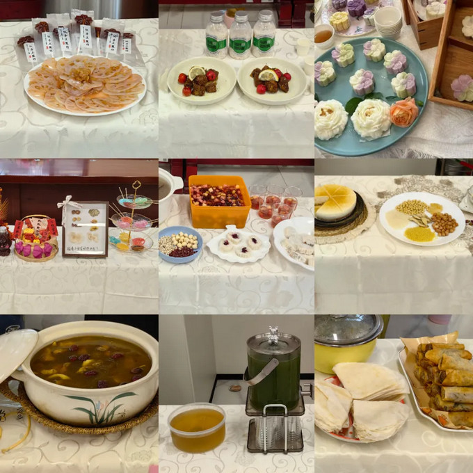 参赛团队以中医理论为指导,巧妙搭配食材。比赛现场,一道道精心烹制的药膳令人目不暇接:温润滋补的养脾散炖蛋、健脾利湿的泌安五茯汤、清热润肺的竹蔗茅根马蹄茶、酸甜开胃的山楂小排、营养丰富的田参鸡肉汤、滋补强身的参芪溪鳗,还有造型精美、口感独特的五蕴冰心饮、美白慕斯、粉红俏佳人,以及滋润爽口的玉竹石斛清润茶。