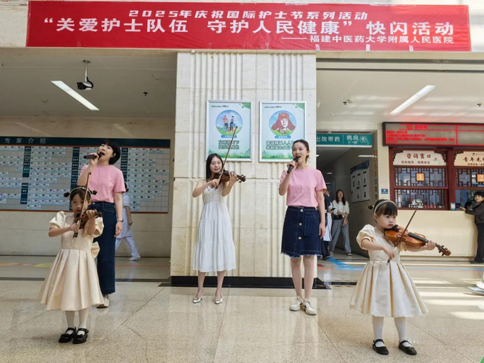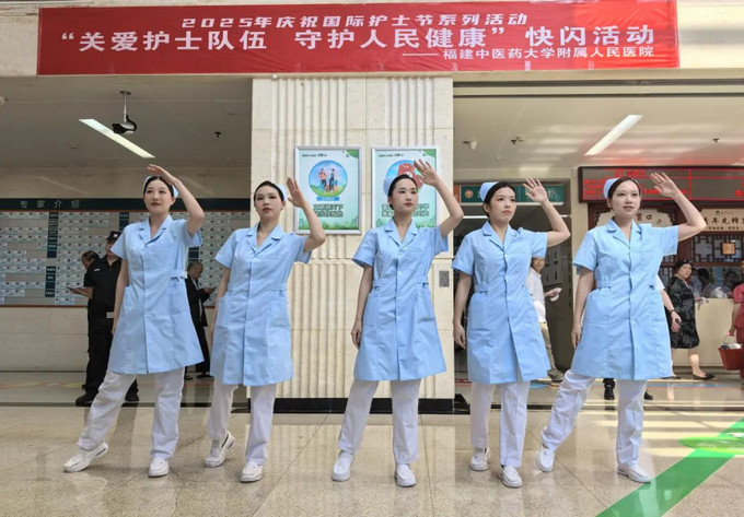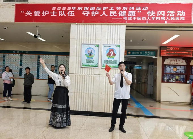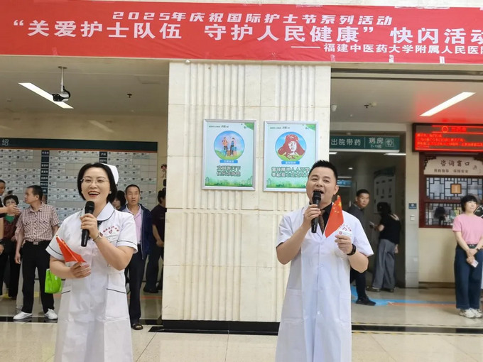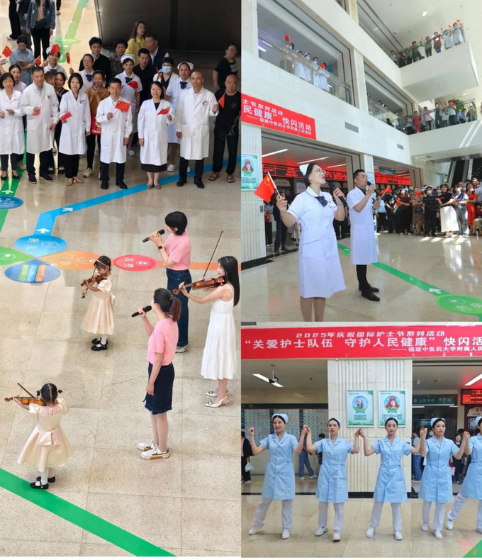 为庆祝第114个国际护士节,弘扬南丁格尔精神,2025年5月12日上午,一场充满温情与创意的快闪活动在黄播 门诊大厅惊喜上演。医护人员、患者及家属共同参与,用歌声、舞蹈和真挚祝福,向全体护理工作者献上最崇高的敬意。