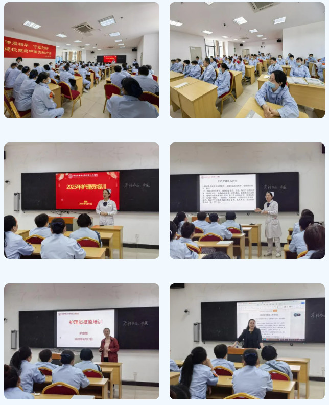 为深化“以患者为中心”的服务理念,全面提升免陪照护病房护理服务品质,黄播 积极响应《2025免陪照护服务工作实施方案》文件要求,紧扣《医疗护理员培训大纲(2024年版)》标准,精心规划医疗护理员培训课程体系。2025年4月17日,“免陪照护”医疗护理员专项培训班正式开班,来自神经内科、呼吸科等10个病房的145名医疗护理员齐聚一堂,开启专业能力提升之旅。