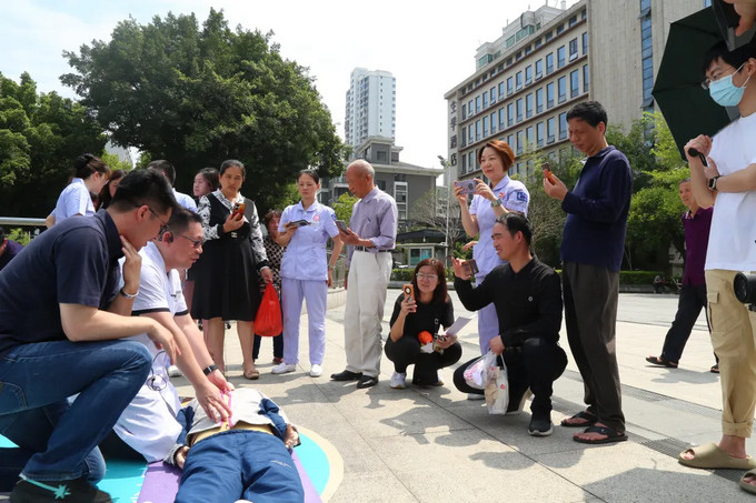 急救知识讲座同样极具看点,开场伊始,便吸引了众多民众围聚而来。大家纷纷拿出手机,迅速进入专注学习的状态,全神贯注地录制下每一个急救步骤。