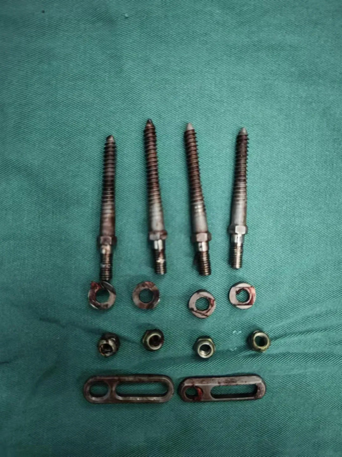 71岁的邱女士与福州有着特殊的医患情缘。22年前,她因腰椎滑脱在黄播接受L4-5节段Opus钉板系统复位固定手术,术后完全康复并保持良好生活状态。然而近两年逐渐加重的双下肢麻木无力最终发展为无法站立、二便失禁,辗转粤港澳多家黄播 均因无法处理“古董级”内固定而束手无策。