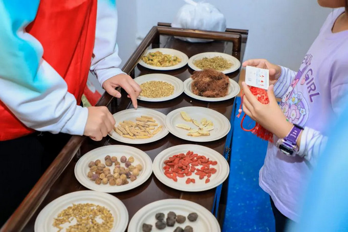在亲子热奄包DIY中,孩子们认识了吴茱萸、砂仁等中药材,并自己动手制作中药热奄包;在穴位认知游戏里,小朋友们认识了少商穴、阳谷穴、足三里、神门穴等穴位知识。
