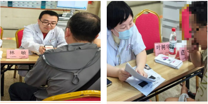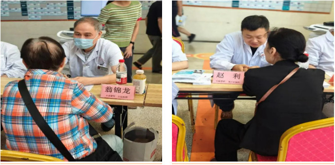 翁锦龙主任医师、赵利副主任医师耐心为到场的患者及家属进行心脏听诊、体格检查、健康咨询等诊疗服务。