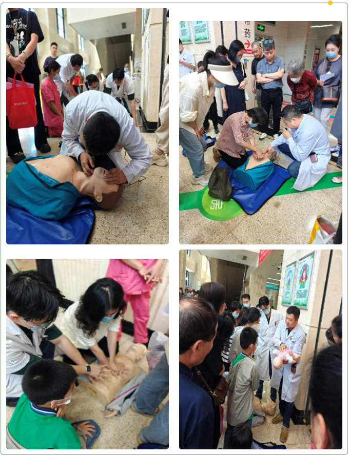 赵利副主任医师等人现场为患者及家属讲解了心肺复苏操作要领和注意事项。从如何判断患者颈动脉搏动是否消失,查看患者口腔内是否存在异物等规范操作流程进行逐一讲解。如遇到呼吸心跳骤停的患者,在拨打急救电话的同时,应立即进行心肺复苏,操作采取的正确体位、按压的方法和技巧、按压和人工呼吸的频次比例。
