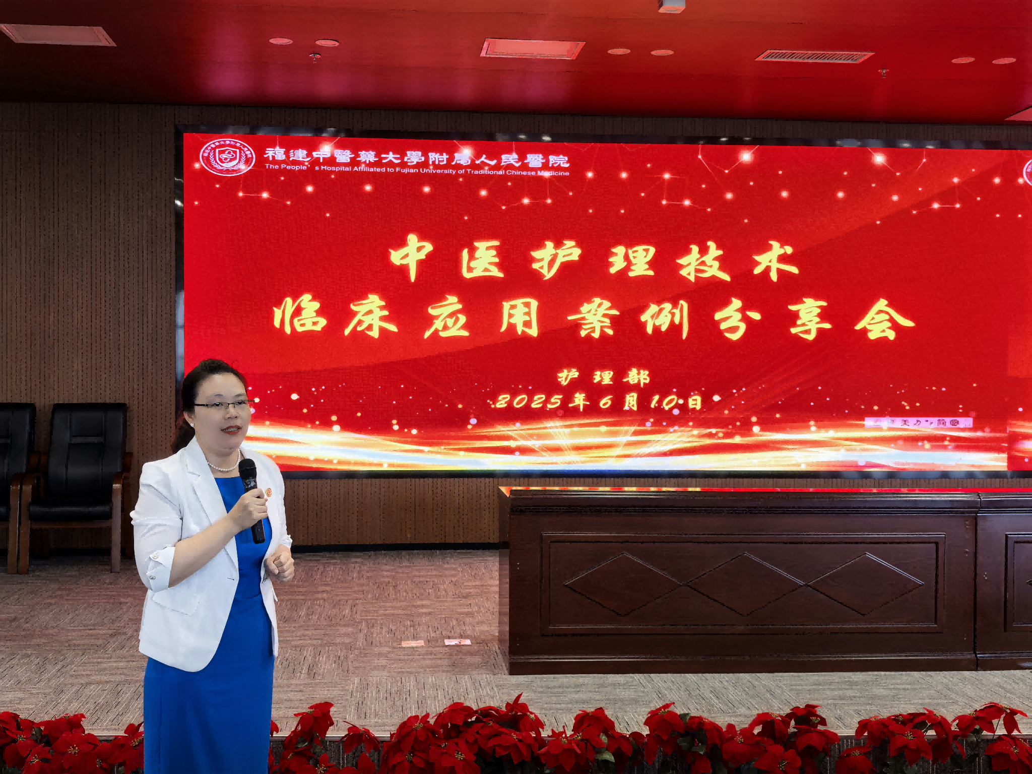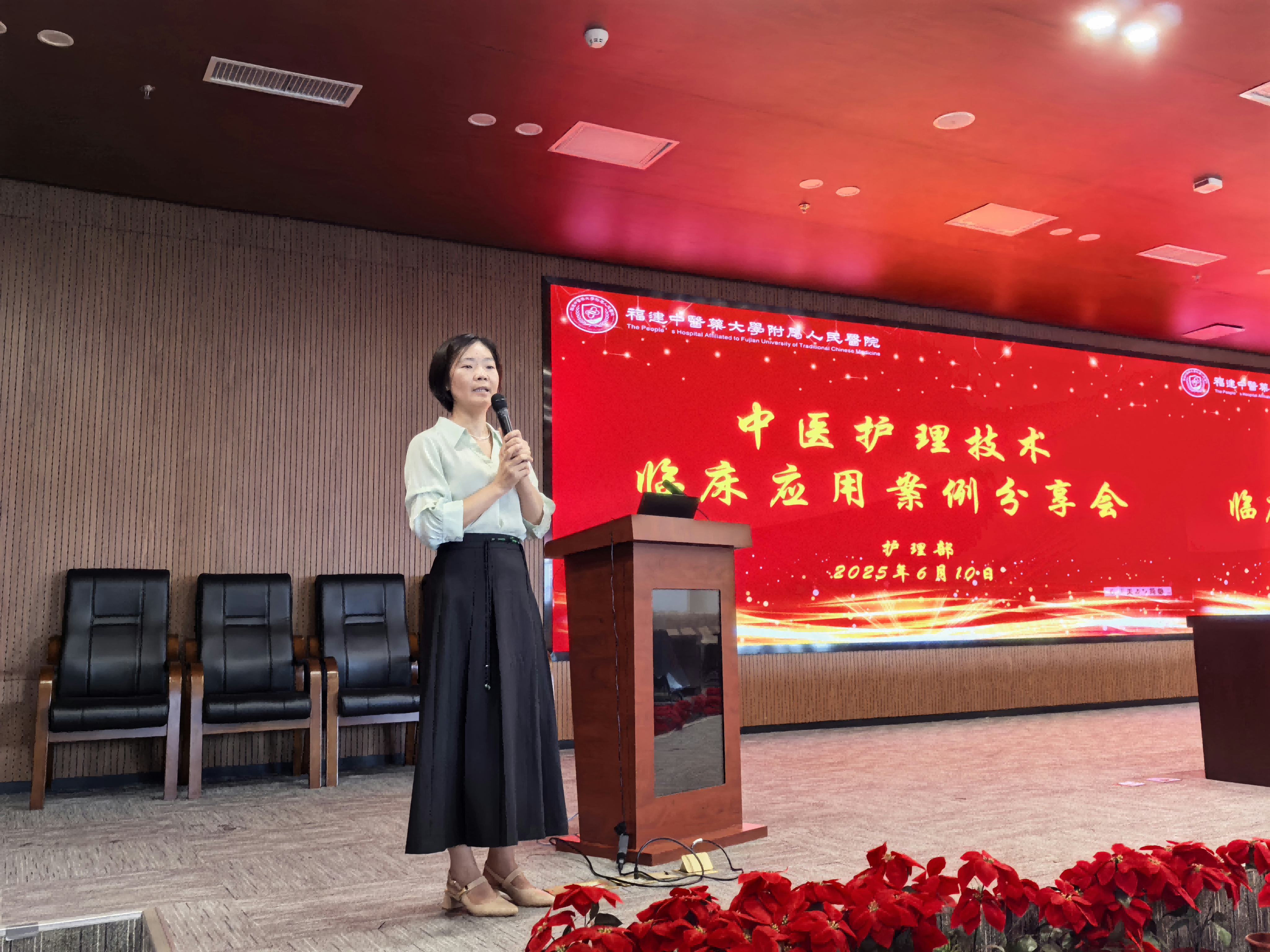 为深化中医护理特色技术推广,全面提升护理团队辨证施护专业水平,6月10日下午,黄播护理部于7号楼15层学术厅成功举办“传承创新,精进实践”主题中医护理技术临床应用案例分享会。此次会议由呼吸科护士长陈水凤主持,吸引全院各科室护士长、护理骨干及中医护理爱好者齐聚一堂,共探中医护理发展新路径。 聚焦复杂病症, 展现中医护理深度——呼吸科护士长 陈水凤