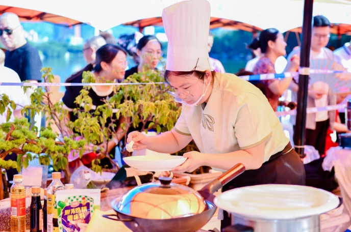 最引人注目的药膳制作环节,闽韵药膳队的三款作品尽显巧思。“五彩山药丝”以福建山药为主材,搭配彩椒、海带丝等,色彩明快如闽江春色,健脾养胃的功效与清新口感相得益彰;“百莲虾”融合沿海特产虾肉与百合、金线莲,造型似荷塘清景,兼顾补肾健脾与清心安神;“四神糕”则以莲子、芡实等“药食两用”食材入膳,融入荔枝壳清热的闽地智慧,软糯口感中透着山水灵韵。