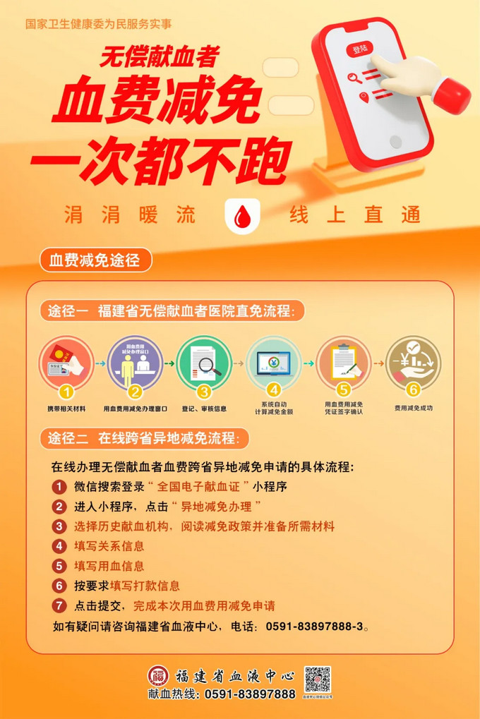 无偿献血者血费减免一次都不跑!线上秒办更省心!