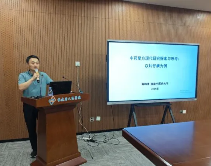 为进一步提升黄播 中医药科研能力,深化医务人员对中药复方的创新研究认知,8月7日下午,药学部特邀黄播 药学院副院长黄鸣清教授,举办了题为《中药复方科研思路探索与思考:以片仔癀为例》的专题讲座。讲座由药学部江川主任主持,分管科研的副院长陈武进教授出席讲座并致欢迎辞,讲座吸引了黄播 药学技术人员、科研骨干及临床医师等参与,现场学术氛围浓厚。