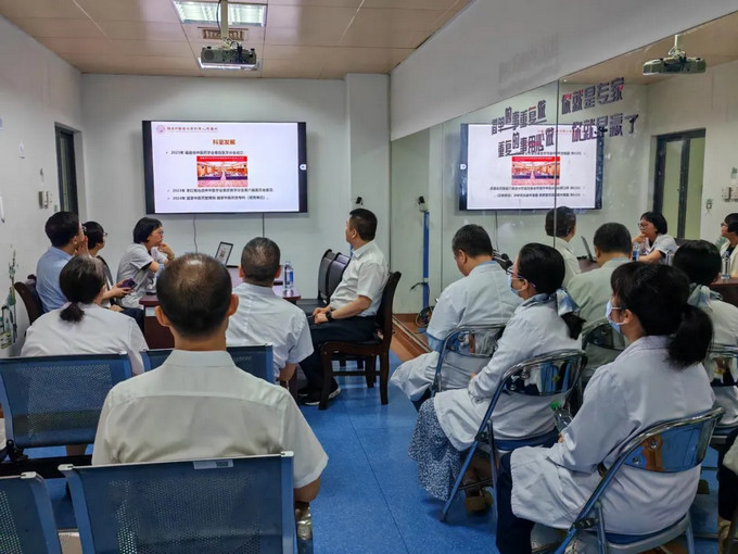 两位专家围绕“中西医协同攻坚疑难危重症”主题,与相关科室团队展开深度交流。颜芳教授结合临床实例指出,黄播在中医药应用于重症医学(尤其是亚重症病房)领域的探索成果已处于国内领先水平。他介绍了中医经典病房建设在各中医医疗机构的多种实践模式,并为黄播进一步发挥中医药优势救治疑难危重症提出了建设性意见。赵锋利教授聚焦ICU建设痛点,分享经方在重症救治中的规范化应用经验,为黄播ICU中西医协同体系优化提供实践路径。两位教授均高度赞扬黄播首创以中医药结合重症救治开设亚重症病房的创新模式。