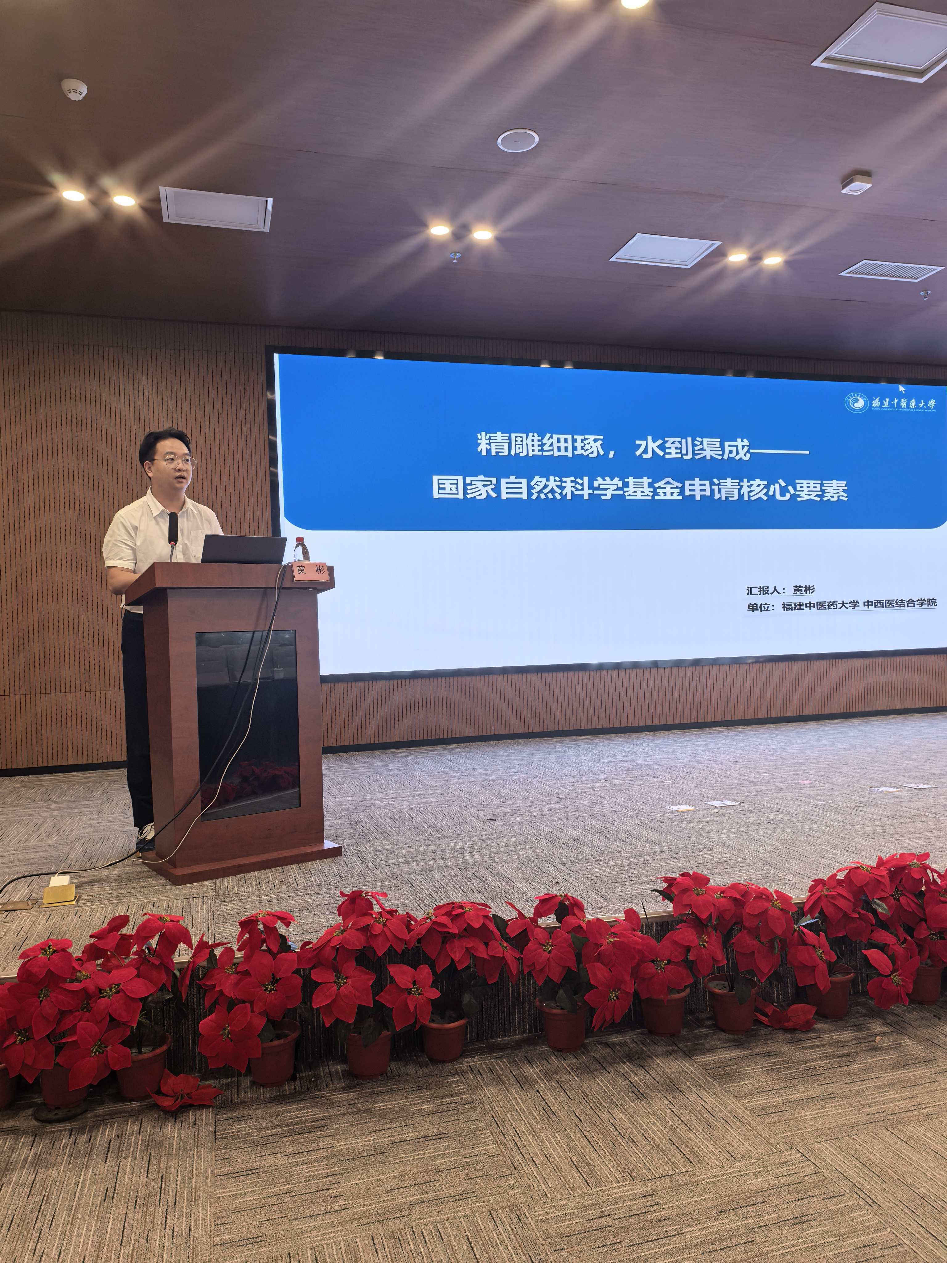 会议特邀两位资深专家作专题指导。洪振丰教授以《2026国自然申报的思考》为题,用数据精准分析了2025年中医药领域中标项目特征及研究热点,预判2026年“临床需求导向”“多学科协同攻关”“青年人才托举”三大趋势,并结合本校中标案例,提出“早谋划、强基础、抓细节、重协作”的决胜路线图。他多次提到青年高层次人才是科技发展的动力,鼓励青年科研人员:“科研如航海,既要仰望星空锚定方向,更要脚踏实地打磨‘船体’。”