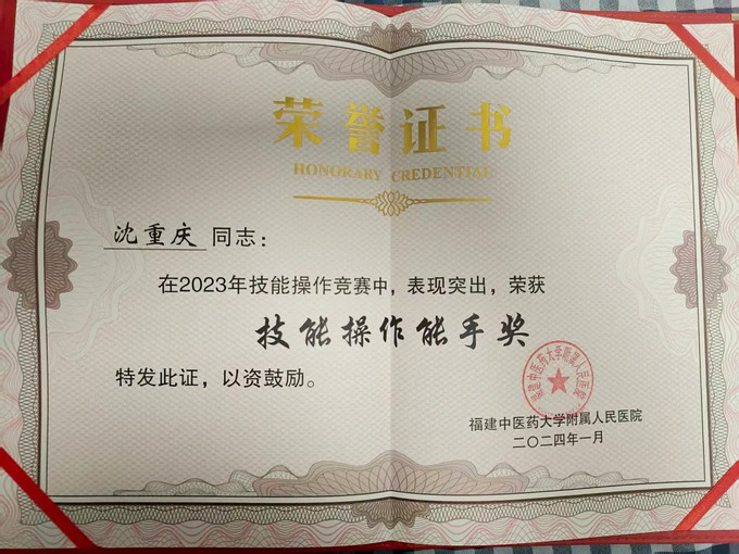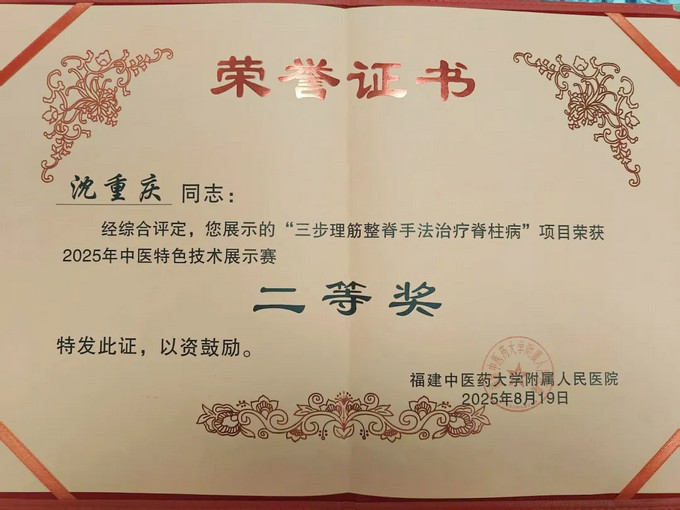 今年的医师节中,在黄播 中医特色技术展示赛上,沈重庆凭借“三步理筋整脊手法治疗脊柱病”项目斩获竞赛二等奖,用实力印证了“年轻有为”这一标签。患者们谈起他,常夸赞道:“他手法准、心肠热,每次找他治病,更像是找老朋友见见面、聊聊天。”
