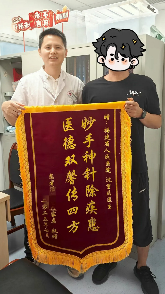 沈重庆也因此获得职业生涯里患者赠送的第一面锦旗——“拿捏乾坤 妙手回春”。