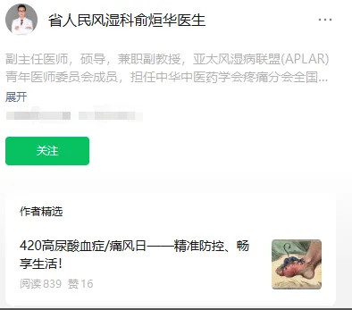 “省人民风湿科俞烜华医生”微信公众号