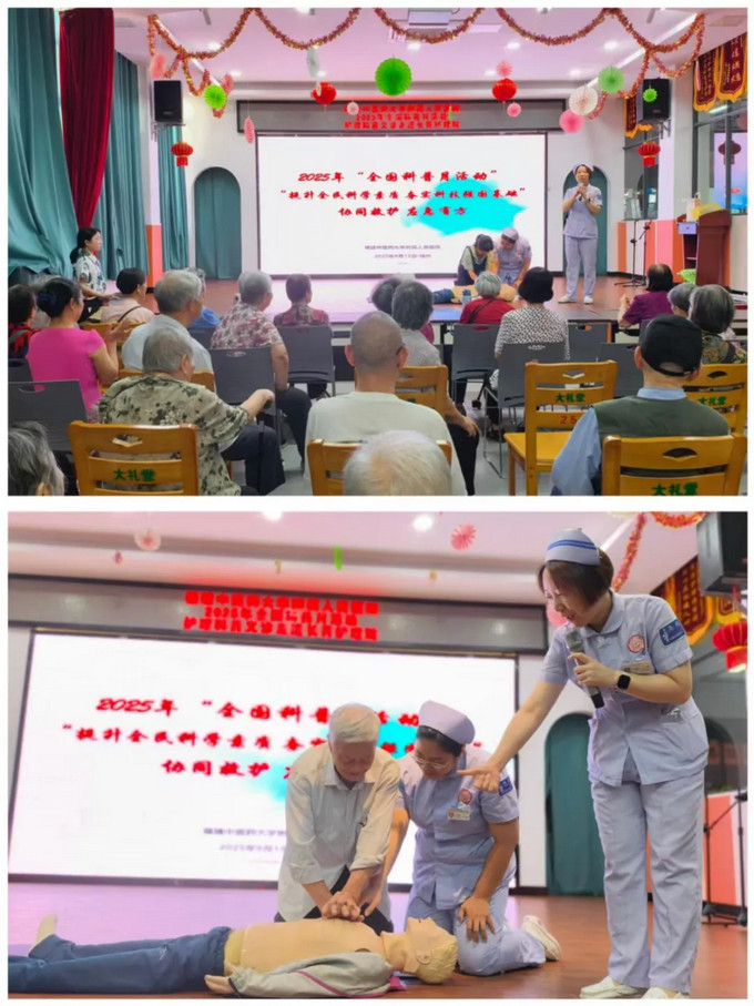 为响应《中华护理学会关于开展2025年全国科普月活动的通知》,2025年9月15日上午,黄播 组织医护科技工作者深入基层,走进长青颐养园,开展以“提升全民科学素质 夯实科技强国基础——协同救护 应急有方”为主题的科普类义诊活动。本次义诊由黄播 护理部危椠罡主任护师、黄锦华副主任护师,传统内科林国清主任医师、内分泌代谢病科郭芳副主任医师等医护专家团队代表组成,旨在通过科技赋能科普,中医助力老年健康,为颐养院的百余名长者们送去健康和关怀。