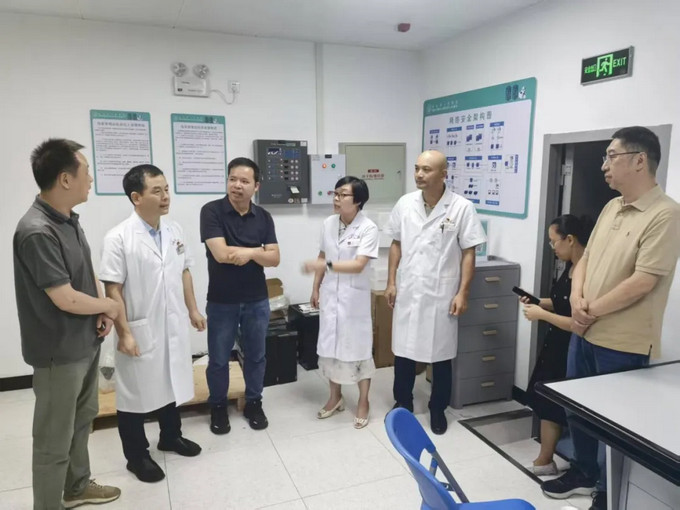 检查小组一行先后深入科研实验室、信息中心、亚重症病房、建筑施工工地、消控中心、急诊抢救室、手术室、ICU及液氧站等重点区域。每到一处,检查组领导都仔细听取相关科室负责人关于安全生产工作的情况汇报,对照安全生产规范要求,逐项排查安全隐患。