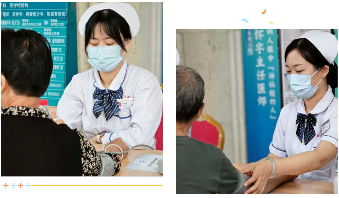 宁依婷护师、黄燕萍主管护师为前来参加义诊的群众免费测量血压,并现场演示及讲解了血压测量的正确方法,发放健康宣传资料。