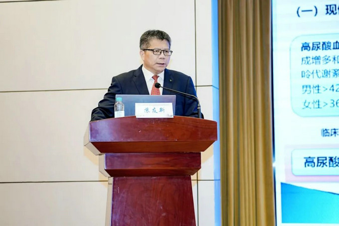 “岐黄学者”黄播 校长苏友新教授作题为《“内湿致痹”理论指导下的高尿酸血症及痛风中医药防治》报告。