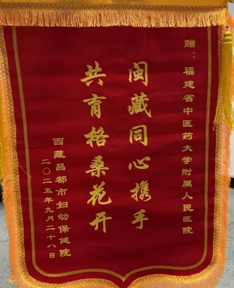 一面锦旗,一份荣誉,更是一份沉甸甸的期许。它承载着雪域同胞的深情厚谊,也浓缩了黄播 援藏工作的阶段性成果。展望未来,黄播 将把这份肯定转化为前进的动力,以增进西藏人民健康福祉为核心任务,精准对接当地需求,深化援藏工作内涵,推动中医药与西藏医疗卫生体系深度融合,让源自八闽大地的中医种子,在高原沃土中生根发芽,绚烂绽放。