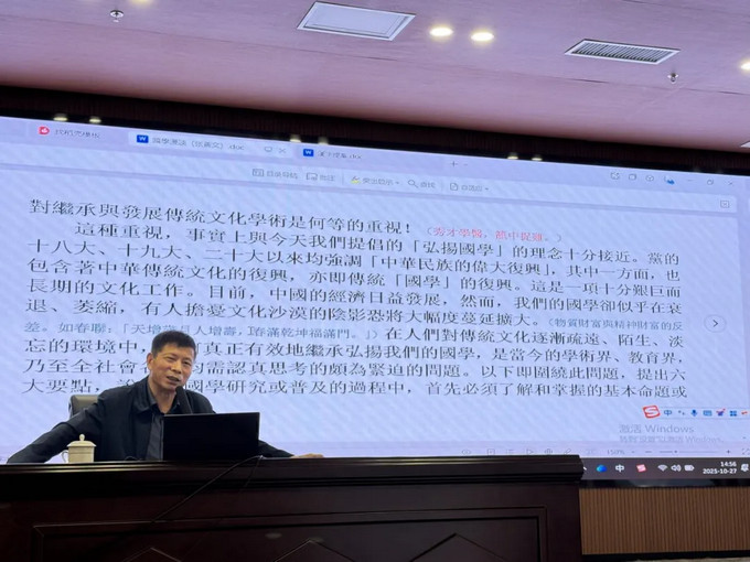 在专题讲座环节,福建师范大学张善文教授以《国学漫谈》为题,从易学的角度深入剖析了中医辨证施治的文化渊源与哲学基础,引导学员以国学智慧涵养中医思维,拓宽临床诊疗的宏观视野。讲座内容深邃生动,为学员打开了“以文载医、以医融文”的学术新路径。