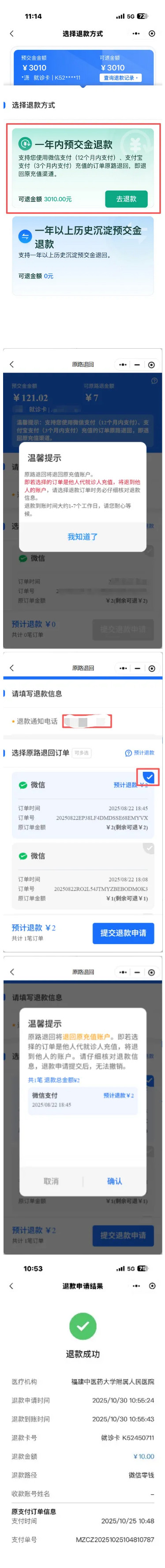 方式一:一年内预交金退款(微信12个月内,支付宝3个月内的支持原路退款)