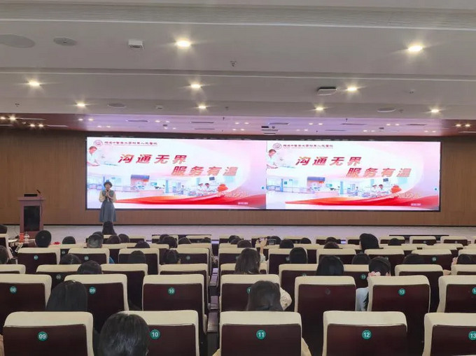 随后在情景模拟环节,活动聚焦临床沟通中的关键场景,通过视频播放直观呈现护患沟通的不同案例。首个视频围绕“缴费问题”,讲述如何以“先关心患者近况,再提缴费需求”的方式,兼顾“提醒缴费”和“人文关怀”,用温暖问候打破隔阂,让沟通更具温度。
