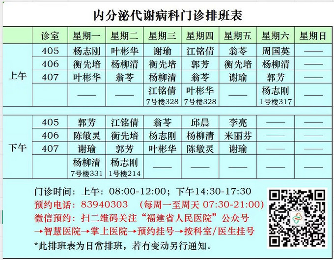科室设有糖尿病专病门诊,甲状腺专病门诊,糖尿病缓解MDT(多学科联合门诊)甲状腺眼病MDT,肥胖MDT门诊、体重管理中心。建立了国家标准化代谢性疾病管理中心(MMC),对糖尿病及其并发症、肥胖病,采用中西医结合,营养指导的综合管理模式,全方位为患者服务,优势明显,效果显著。