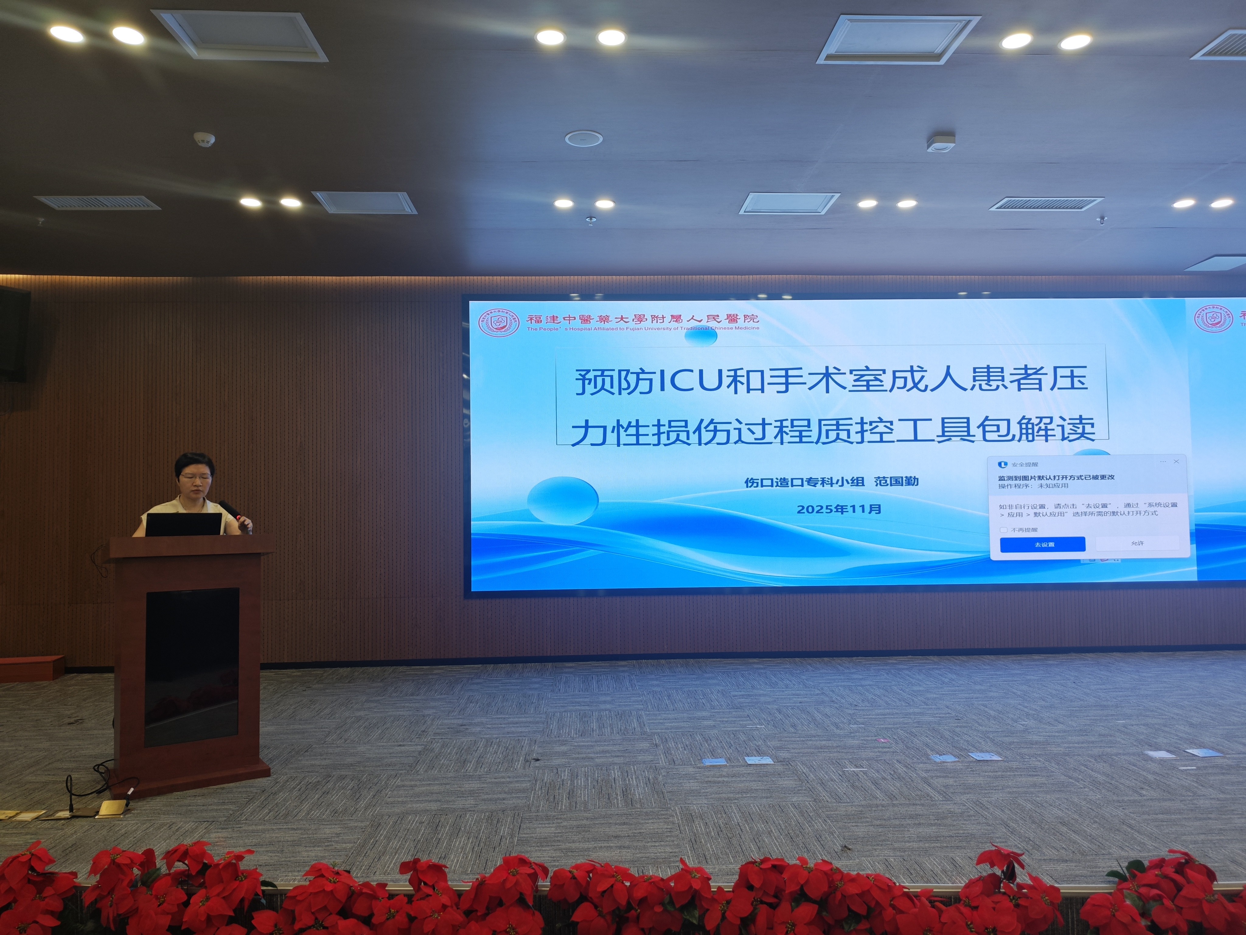 压力性损伤“预防针”:对《预防ICU和手术室成人患者压力性损伤过程质控工具包》进行详解,重点传授了如何精准评估风险、有效实施体位管理、正确使用减压工具等核心技能,致力于将压力性损伤“防患于未然”。