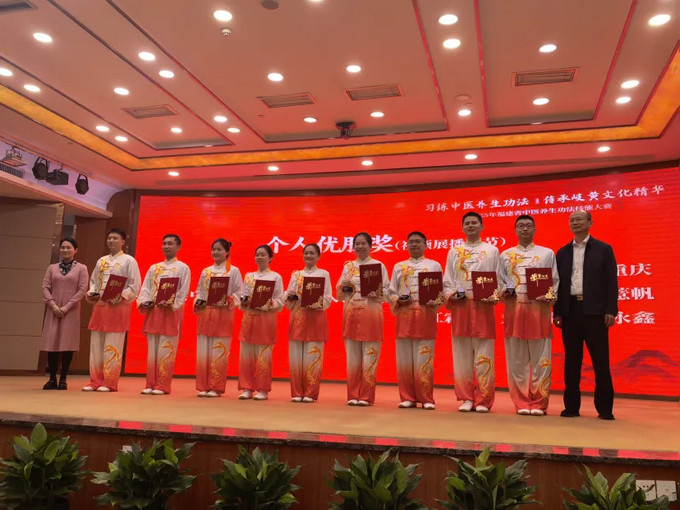 自赛事启动以来,医院高度重视,依托过往夺冠经验精心选拔骨干力量组建参赛队,制定专项训练计划,从功法招式打磨到理论知识巩固,进行系统性备赛。选手们在各环节均表现出色,功法视频展播及技能演示现场,队员们动作舒展,气韵贯通,充分展示中医养生智慧与功法美感完美融合;综合笔试与知识竞答环节,队员们从容应答,精准展现扎实的中医药理论基础。