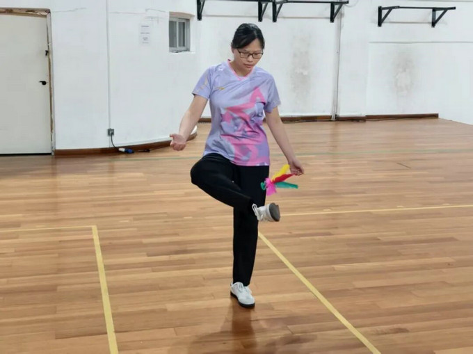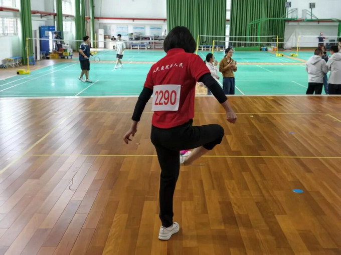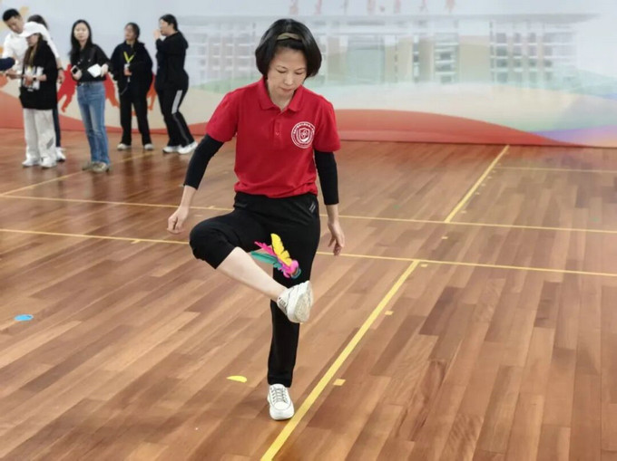 教工女子组踢毽子: