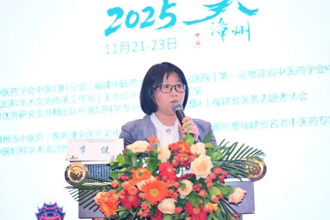 福州市中医院李健教授以《(闽南吴氏妇科)心肺论治观在中医妇科临床的应用》为题作学术报告