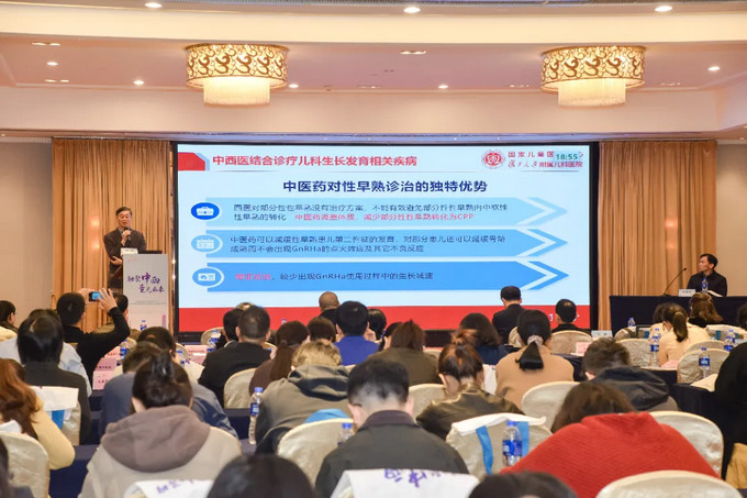 学术交流环节中,钱新春二级巡视员为大家开展《水知道答案》的专题讲座,结合中医的《内经十三方》《本草纲目》等中医经典理论,探讨水的特点及相关的哲学理论。俞建教授结合自己丰富的临床经验生动地讲述了中西医结合诊疗肥胖症、性早熟、矮身材等儿童生长发育相关疾病。郑宏教授讲述了儿童多囊卵巢综合征的诊断与中西医结合治疗方法。艾斯教授讲述郑健名中医辨治儿童肾系疾病(包括儿童肾病综合征、过敏性紫癜、生长发育等方面)的临床经验和经典案例。杨文庆主任讲述青春期大骨龄的矮身材儿童应如何制定治疗策略。各位专家从儿童常见多发病着手,聚焦前沿,全面展示了中西医结合诊疗儿科疾病的独特优势。