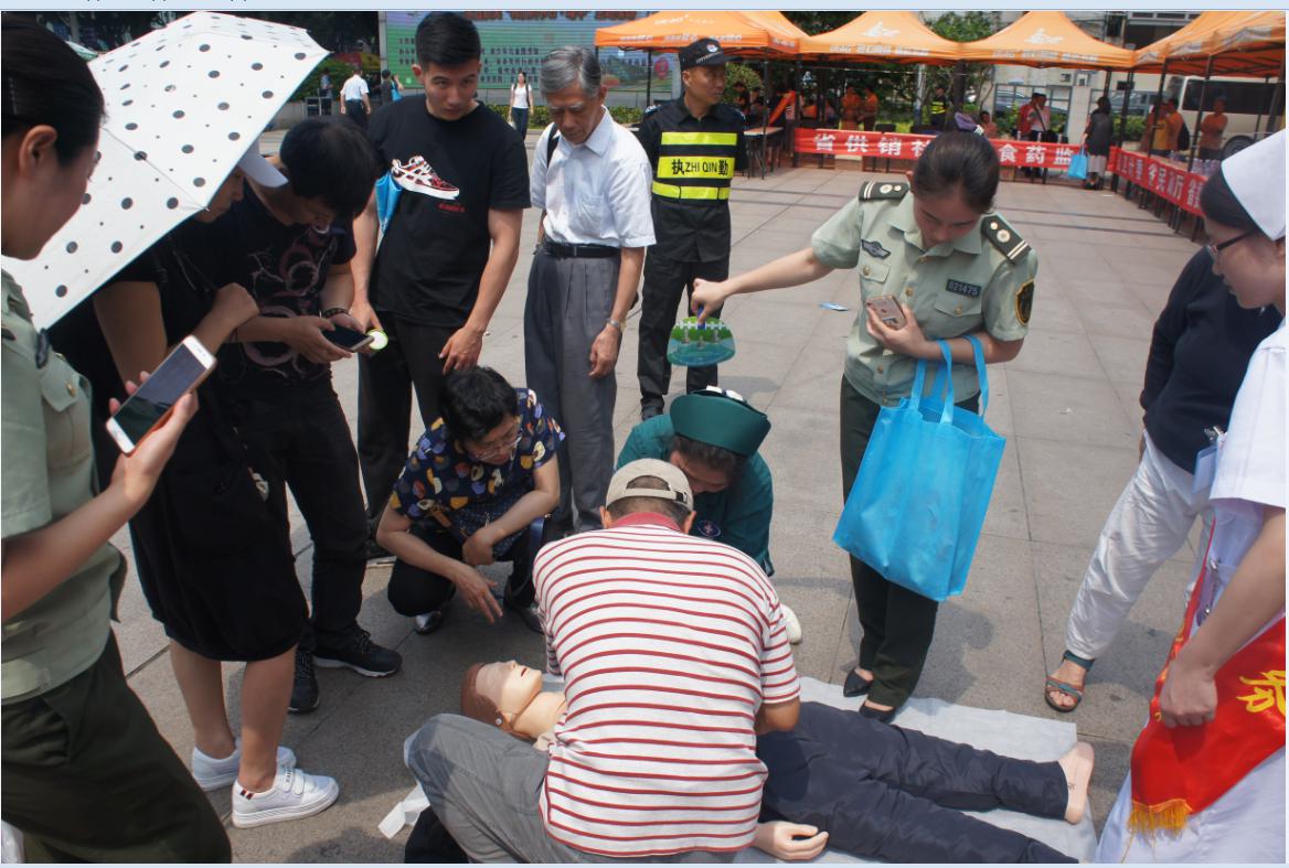 参加此次义诊的专家有眼科曹明芳副主任医师、消化内科郑琳副主任医师,传统内科闫超主治医师、骨伤科王清玉主治医师及急诊科李清护士,义诊从上午9点持续到11点,专家们冒着烈日耐心细致地为前来咨询的患者提供专业的医疗知识和养生保健咨询服务,悉心讲解病情,提出诊疗建议,受到现场患者的一致好评。活动现场,急诊科护士李清进行了一场生动的“心肺复苏”演练,吸引了很多民众纷纷上阵亲自操作。