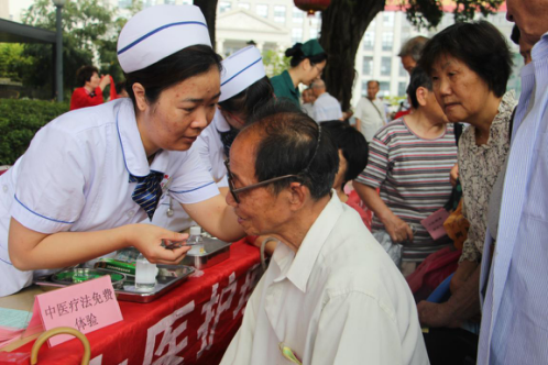 亮中医护理“绝活”:护理义诊团队现场提供中医健康咨询、体验传统特色护理技术、教授养生保健操、示范婴幼儿抚触技巧、开展心肺复苏培训……