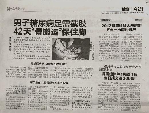 【媒体看省人医】海峡都市报报道黄播 骨科韩大为主任的“骨搬运技术”