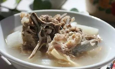 【解析】羊脊骨性味甘温,功能温肾补虚、强健筋骨,可用于肾阳虚冷,腰膝酸软,体衰羸瘦等,故《饮膳正要》说:“(羊)尾骨,益肾明目,补下焦虚冷”,《本草纲目》谓其“补肾虚,通督脉,治腰痛。”肉苁蓉性味甘温,功能补肾助阳、暖腰膝、健筋骨、滋肝肾精血、润肠胃燥结,为补阳之佳品,如《本草汇言》所说:“温而不热,补而不峻,暖而不燥,滑而不泄。”菟丝子辛甘而平,功能补肝肾、益精髓,既补肾阳,又益肾阴,补而不峻,温而不燥,性平质润,为滋补肝肾之良药。全方羊脊骨、肉苁蓉、菟丝子同用,既温阳,又益精。大寒时节,气候寒冷,可以常食有助于暖胃、祛除内寒,提高机体抗病能力。