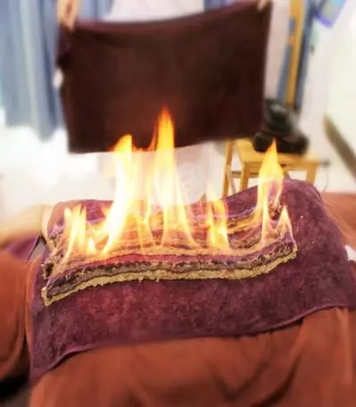 火龙灸是采用陈年艾条加上用米酒浸泡过的温阳药物,施灸督脉及膀胱经,方式以直接灸为主,因灸时烟雾形如长龙而被称为“火龙灸”。